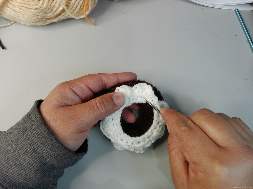 Stuff the donut evenly as you go, then sew closed using a whipstitch.
