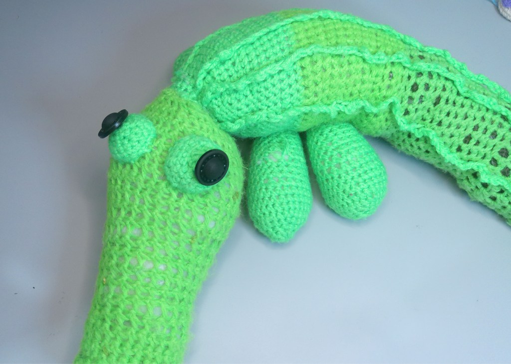 Look at him. Really look at him. Those gaps you can see right through. Those slightly lopsided eyes. Those wonderfully chunky little toes. He is absolutely, completely, perfectly imperfect — and I wouldn’t change a single stitch.